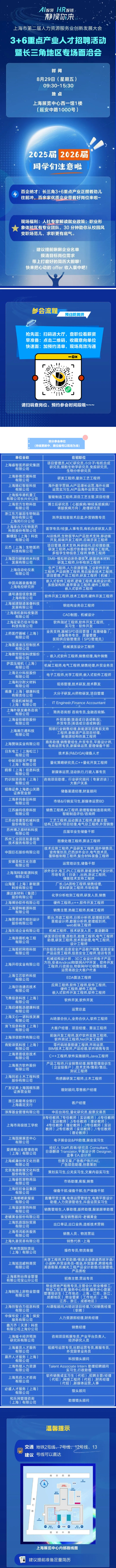 上海市第二届人力资源服务业创新大会“3+6重点产业人才招聘活动暨长三角地区专场面洽会”将于8月29日(本周五)在上海展览中心西一馆1楼进行。